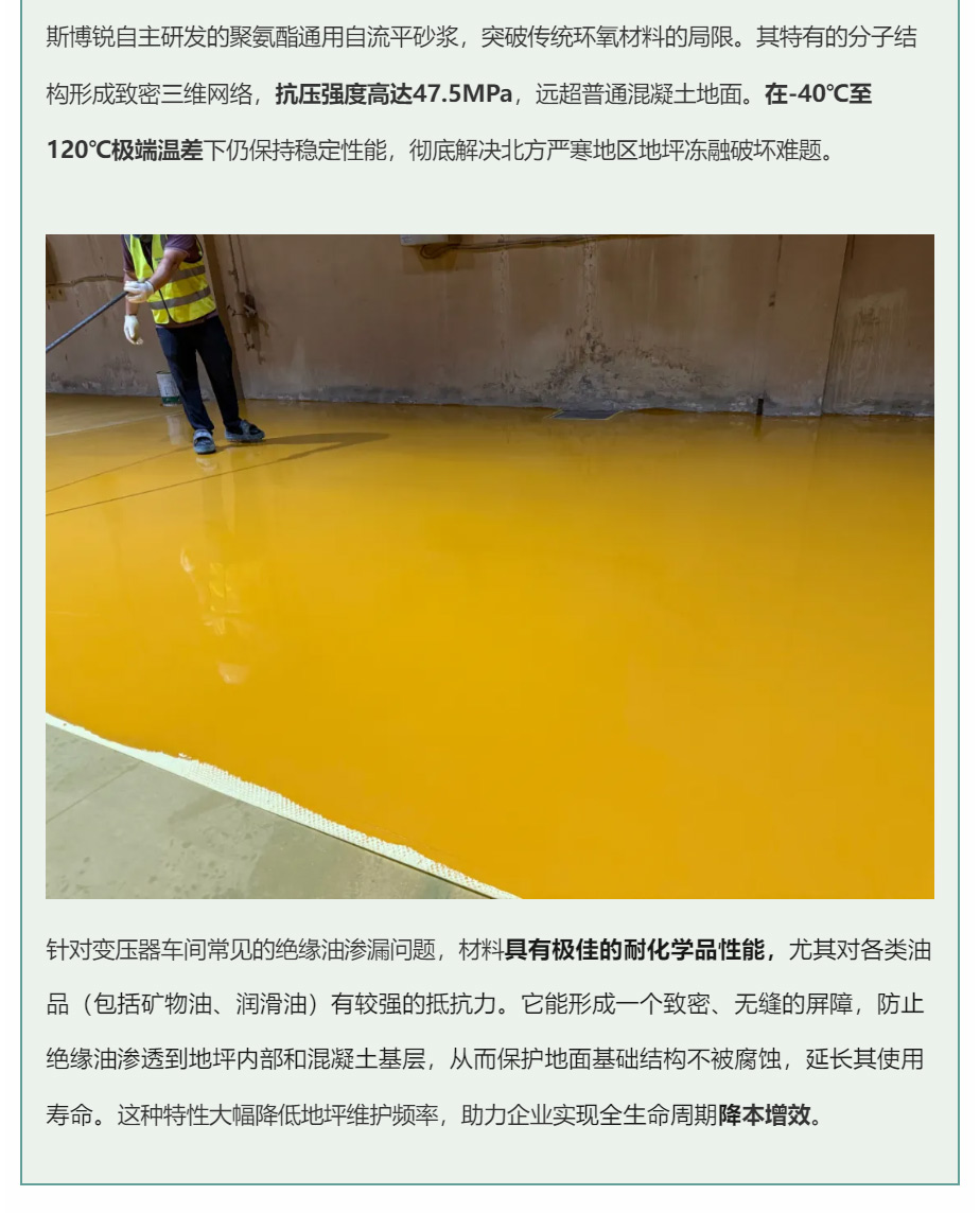 告别绝缘油渗漏烦恼!斯博锐聚氨酯通用自流平砂浆地坪为平高集团变压器车间筑牢“地面防线